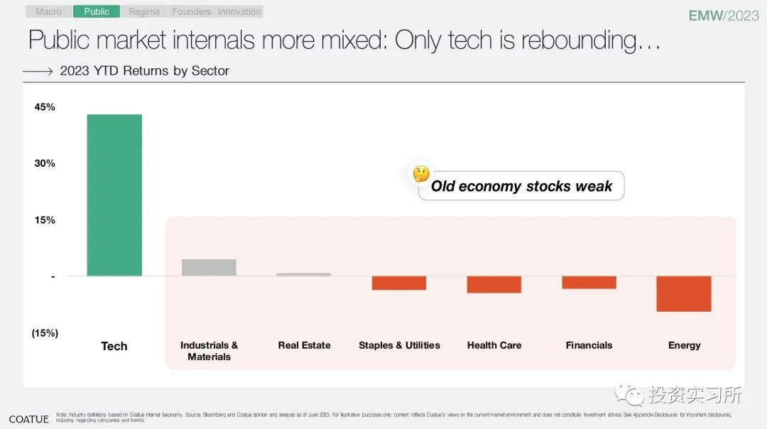 整个公开市场还在增长,但是细分来看除了科技,其它领域都不容乐观