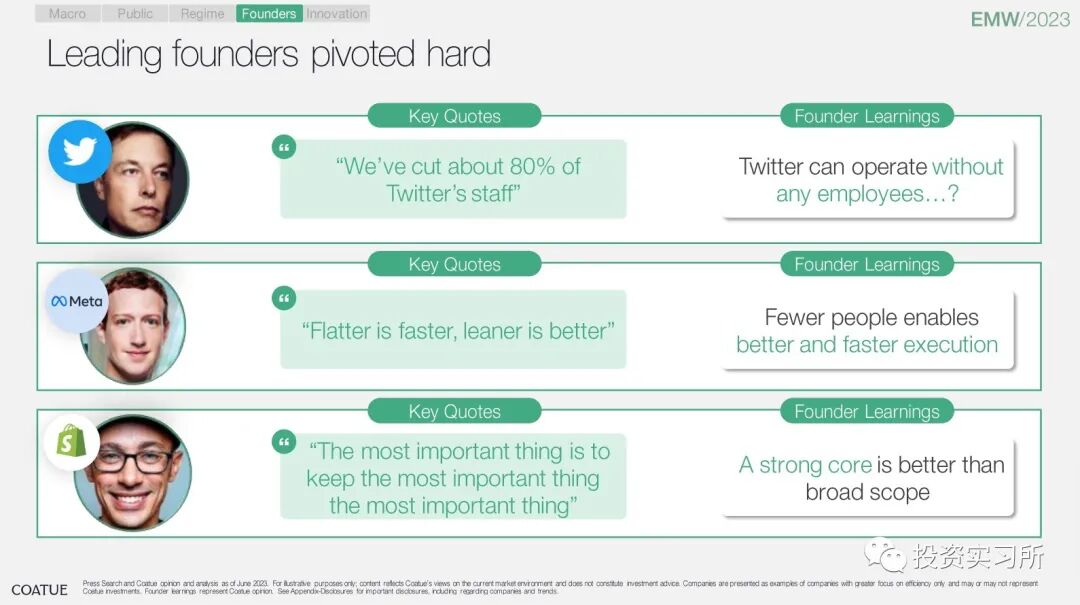 通过这段时间一些顶级企业家的探索,我们学到了:降本增效、回归核心业务