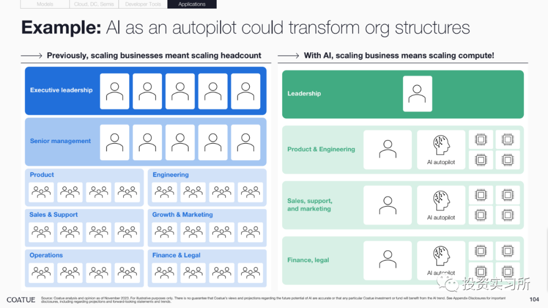 20.如我之前文章里所说,AI 可能会彻底改变未来公司的组织架构,这点 Coutue 跟我的观点是一样的