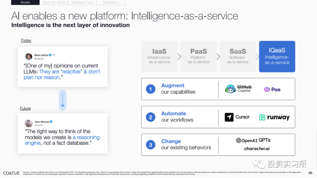Coatue 在其官方网站说,AI 正在改变技术堆栈,包括:
