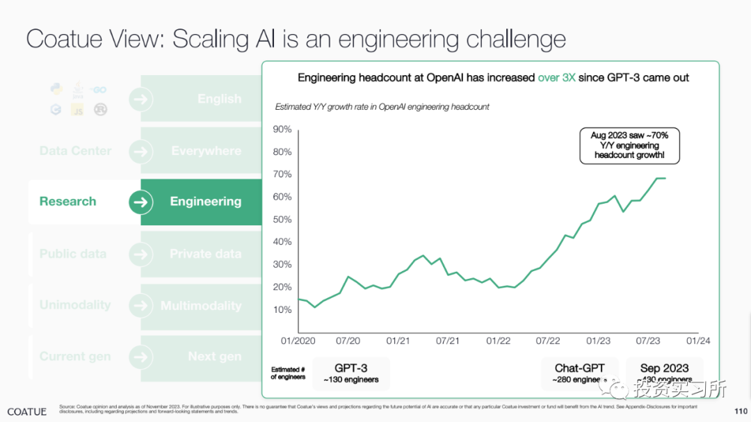 3.AI 的 Scaling 将是一个工程挑战(OpenAI 的工程人员自 GPT-3 后增加了 3 倍)