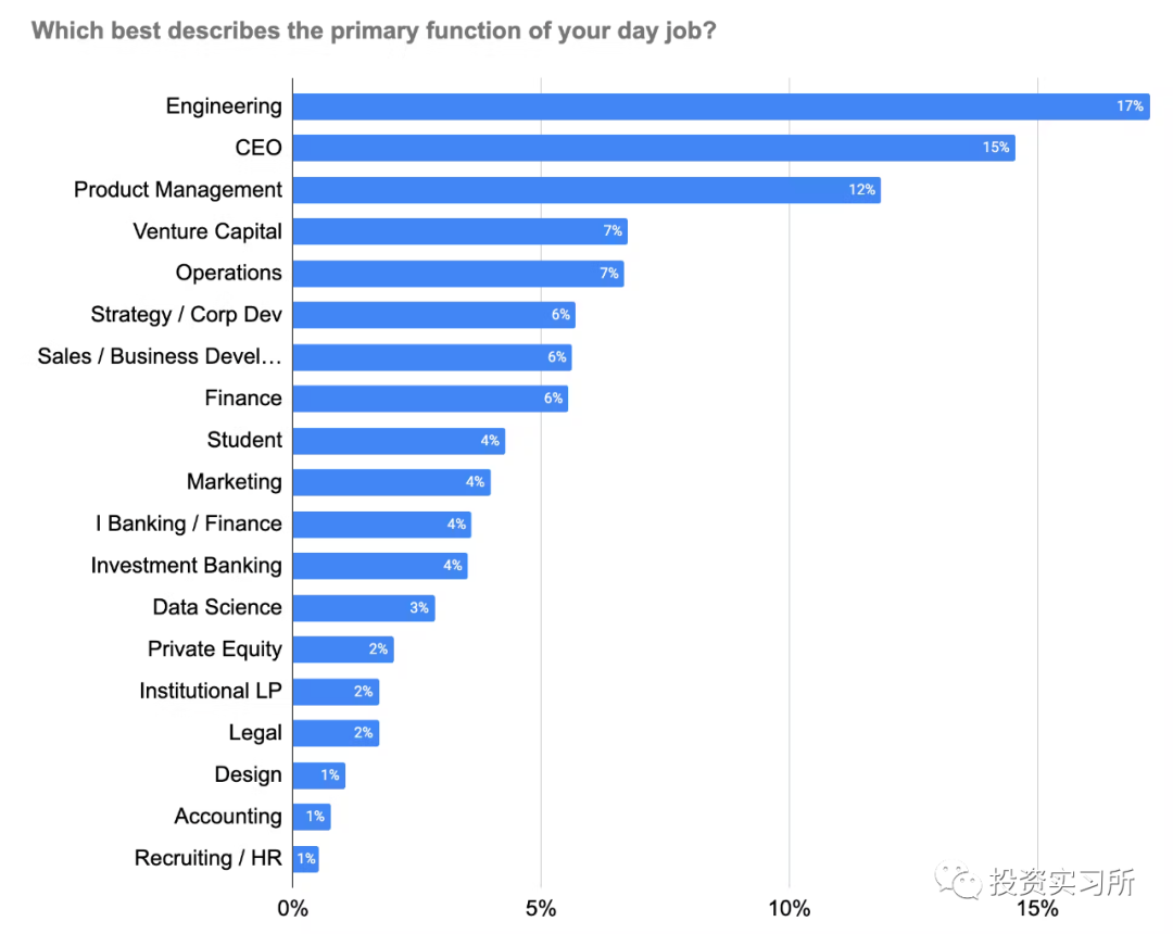 资本生态系统:超过 30% 从事风险投资、有限合伙人(LP)或其他投资、金融或企业发展角色。
