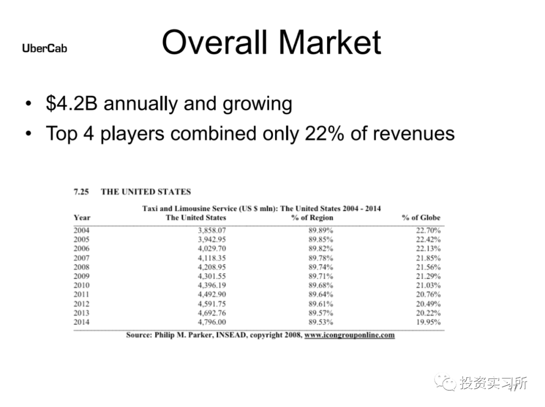 这份报告当时非常流行,即使是 Uber 的创始团队,在早期也低估了随着时间的推移,从早期流动性质量的基础上逐步提升的机会规模。在早期的 BP 里,他们对市场规模的预估并没有多大。