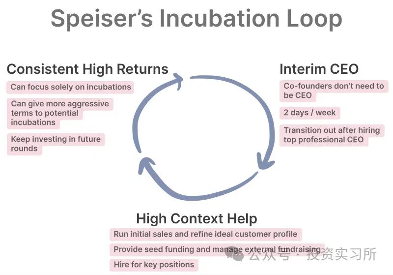 我在 2020 年底介绍 SHV 的投资孵化策略时,曾说过 Speiser 在 SHV 的核心目标不是去投资现有的公司,而是专注于一件事:创办和建立公司。当他看到某个机会时,他会与数百名潜在的创始人和客户见面,从中找到合适的 2-3 位联合创始人以及未来的 CEO,这些人往往都是在行业里面非常资深的人,之后与团队一起构建企业。