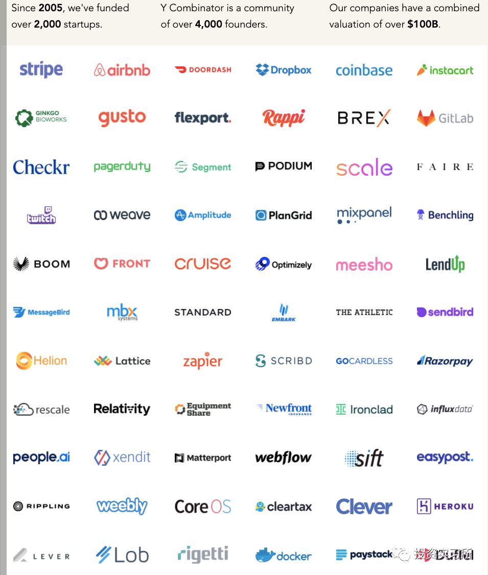 自 2005 年创立以来,15 年的时间,YC 已经投资孵化了 2000 多家创业公司,目前社区有 4000 多位创始人,估值超过了 1000 亿美金。这其中包括像 Stripe、Airbnb、Dropbox 以及 Coinbase 等非常成功的企业(如下图),YC 也在一定程度上成了创业的风向标。