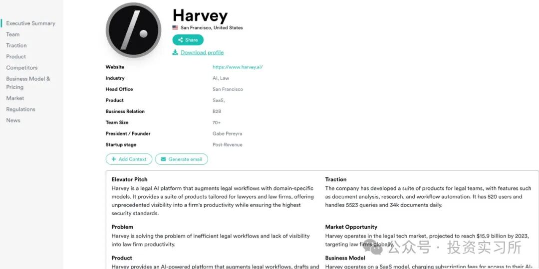 最近我发现的一个面向 VC 行业的 AI 产品,就给了我这种结构性成本优势的体感(以极低的成本提供 10 倍更好的体验),我觉得它已经具备一些取代初级研究员的潜力了,或者说可以极大加速研究员做行业研究。
