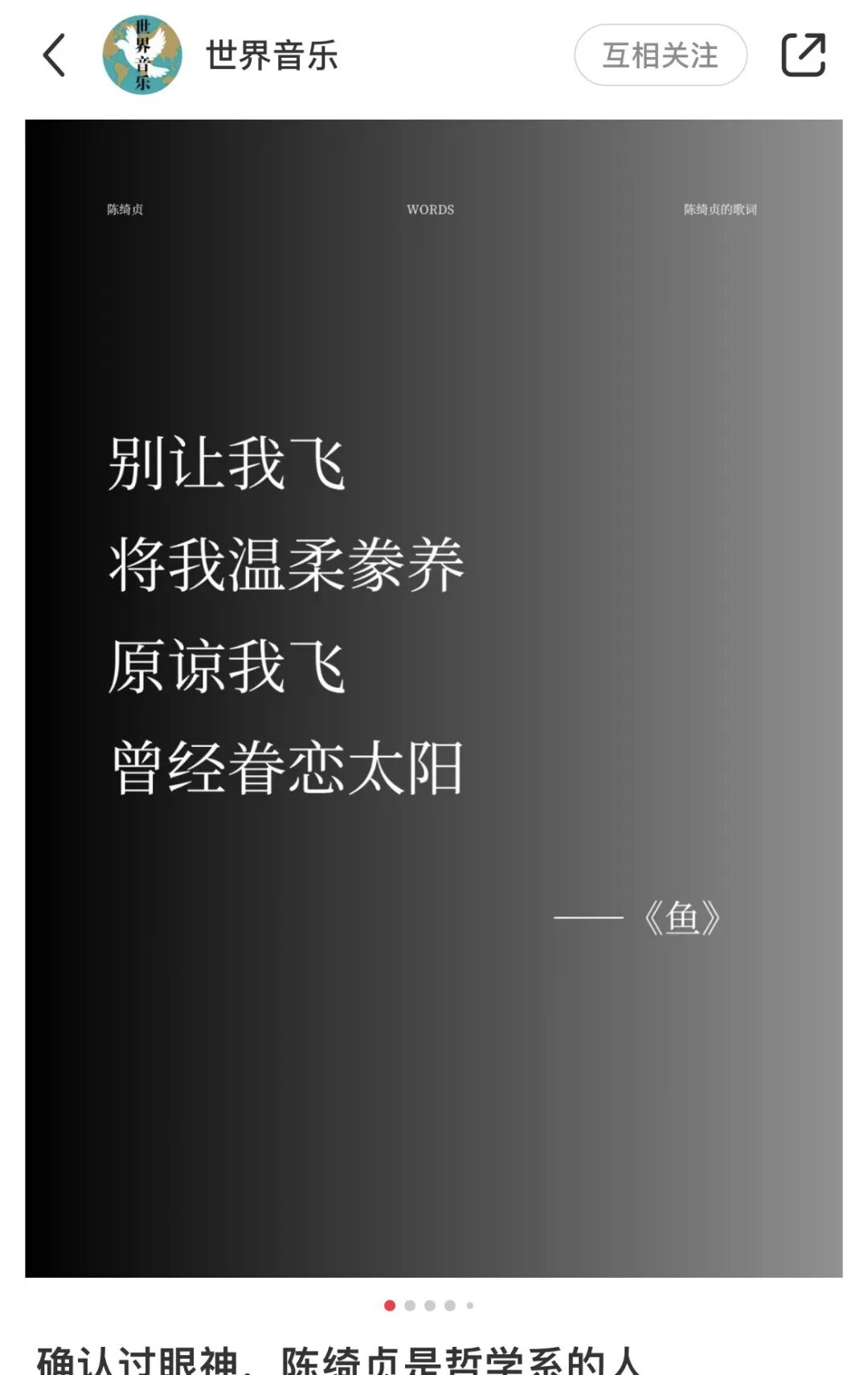 哲学系毕业的陈绮贞,她的文艺气质并不是抱着一把吉他就可以硬凹出来的,回看她写的词,都是埋了不少梗,也充满了自己对个体,对世界的思考。