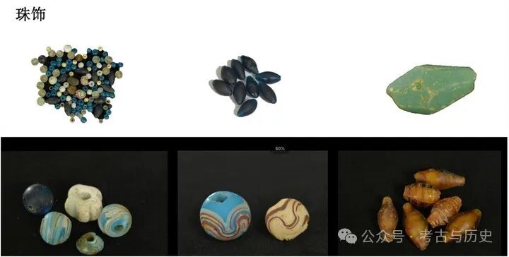 装饰品:有金花片、发钗、珠子、银梳背等,还有锡、玻璃、琥珀、玛瑙、玉石、海贝等饰件,这些装饰品展示了当时人们对美的追求和审美趣味。