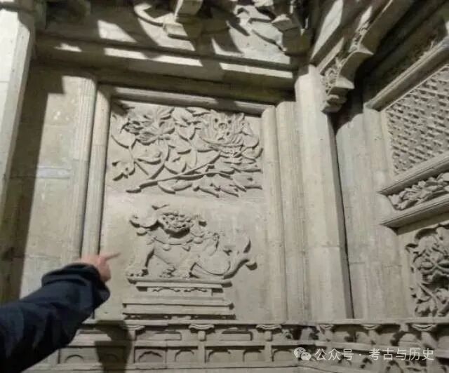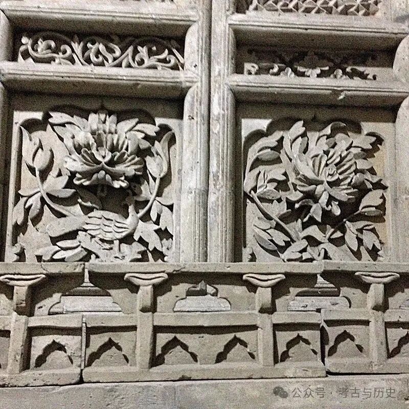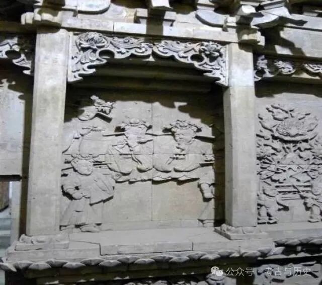 这个砖雕展示的是戏剧表演,台上有三人,一人打鼓二人吹笛箫,反映了墓主生前喜好戏曲,生活闲逸的真实场景。