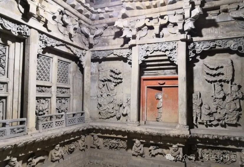 马村砖雕墓共有14座,已发掘9座,均为砖室墓,由墓道、墓室组成,墓室是墓主生前豪华宅居的微缩版,表现为北为堂屋,东西为厢房的四合院形式。