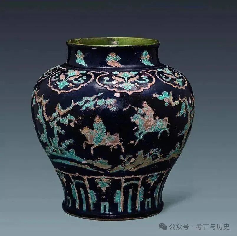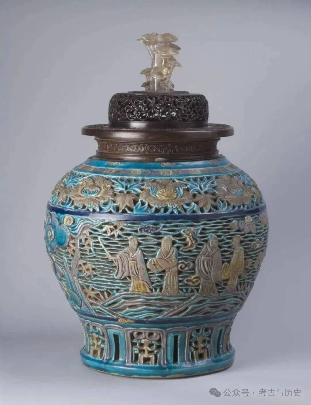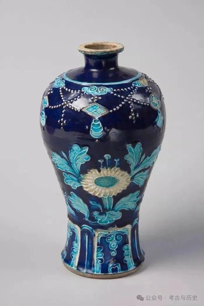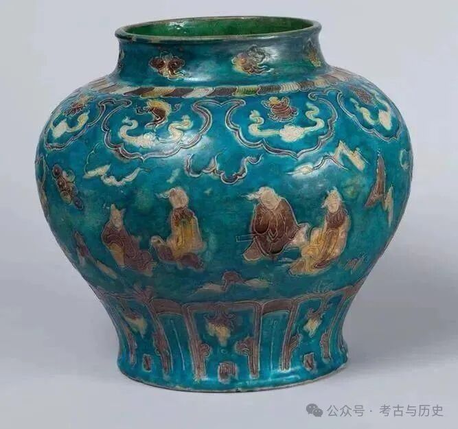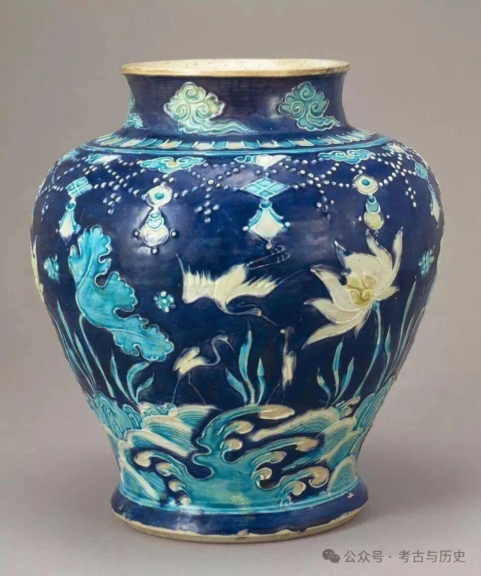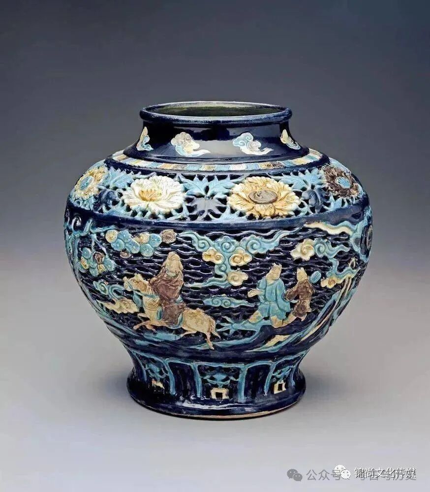 值得一提的是,前两年的“南海一号”沉船上提取了多件珐华器,器形为罐和梅瓶,器身以深蓝、浅蓝或绿色珐华釉铺地,用沥粉勾勒出凸线花纹,再填以深蓝、浅蓝、黄、紫等珐华釉,证明明代中期景德镇珐华器曾作为商品对外销售。