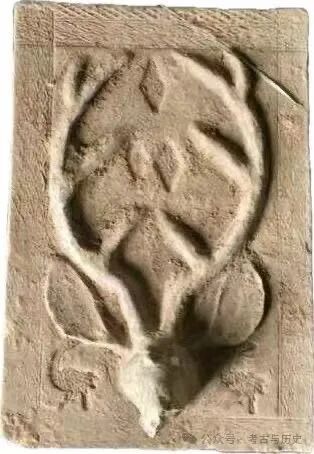我第一的反应是:这不会是草原文化的东西吧,再一想家乡有皋落这个古老的游牧部落留下的地名,不会是他们定居中原后的产物吧?后来和朋友们讨论,有人说是道教文化的东西,原始道教有骑鹿升仙的说法,传说老子就是骑鹿升仙的。我还是有点疑惑,道教的骑鹿升仙图汉砖里多有呈现,一般都是一人骑鹿的形象,鹿身旁云雾缭绕,营造出一种仙境的氛围,而这块砖只有一个鹿头,鹿头两侧耳朵下方各有一片类似树叶的图案。