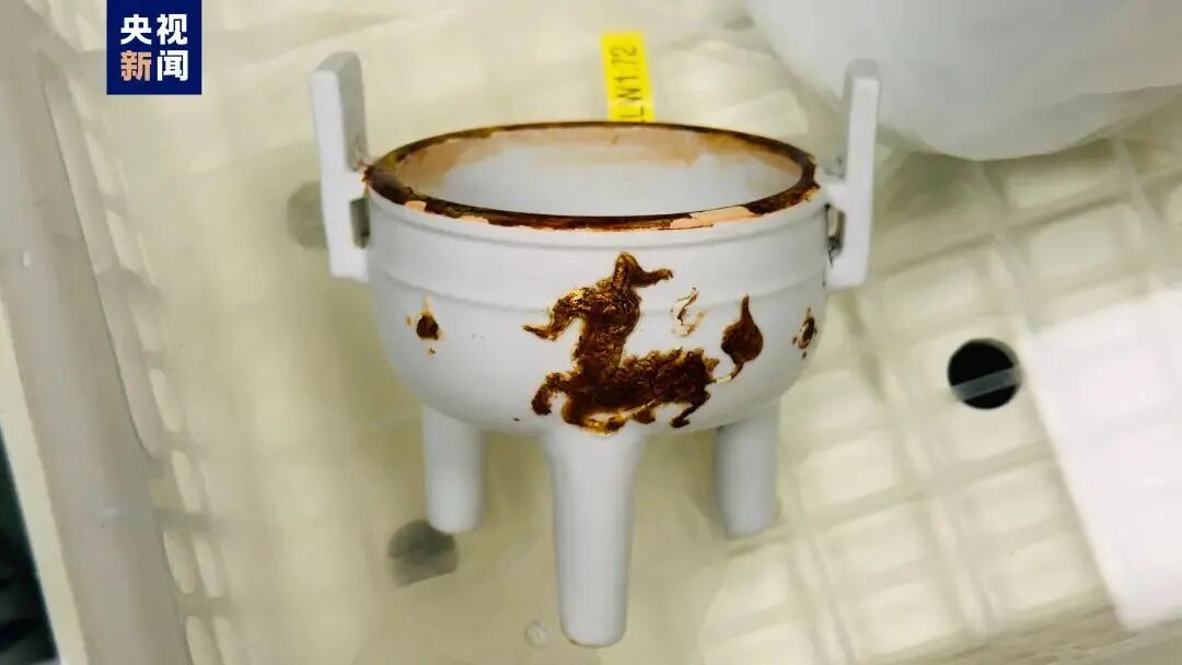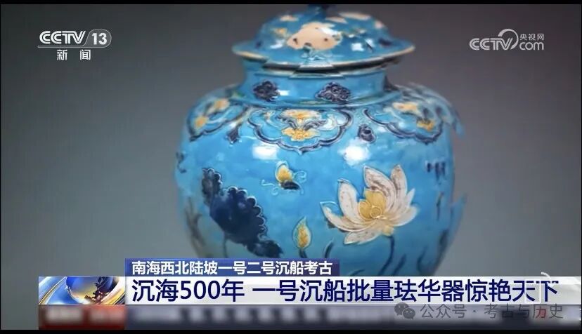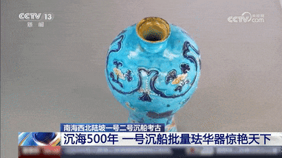 中国(海南)南海博物馆馆长辛礼学说:目前来看珐华釉瓷器,可能是最惊艳的。最特别的是珐华釉瓷器的表面,出现了主体纹饰贴上黄金金箔的工艺,这是以前没有发现过的,制作工艺非常高超。明代中期的时候是比较盛行的,这一批珐华釉瓷器正好是明代中期的。