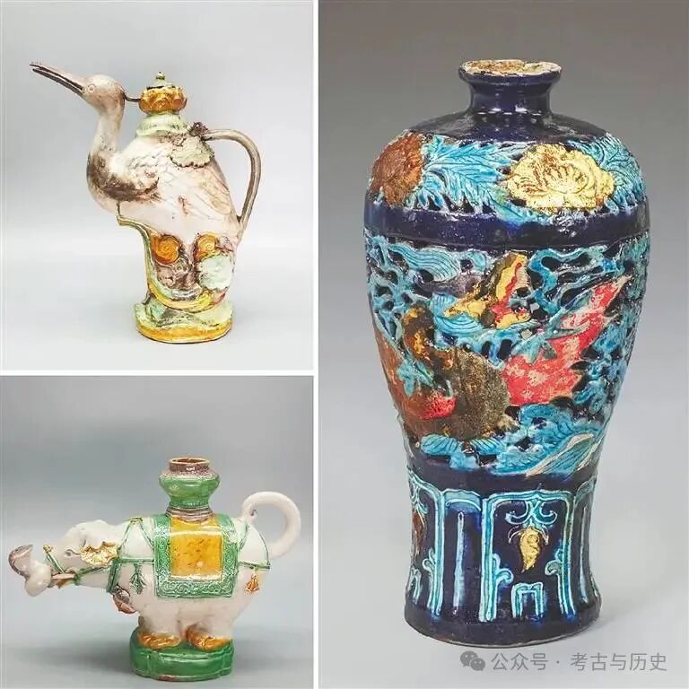 一号沉船上的陶瓷器,除法华器外,还有青花、白瓷、三彩等。