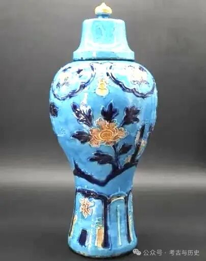 珐华器,又称“珐花”“法花”“法华”,是一种以陶或瓷土为胎,施蓝、绿、白、紫等色彩的中温釉。它色彩丰富艳丽又多样,极具艺术感染力和观赏价值,有人形容它“蓝如深色宝石之蓝,紫如深色紫晶之紫,黄如透亮之金珀。”法华器分两次烧成,先在陶胎上以凸起的沥粉勾勒出双线花纹图案后烧制成器,然后在花纹间填以釉彩,再次入窑以低温烘烧而成。珐华器创烧于元代的山西运城、晋城一带,明代中期景德镇地区开始使用瓷胎仿制珐华器,一号沉船上的珐华器,从器形、胎釉及装饰技法来看,应产自景德镇。