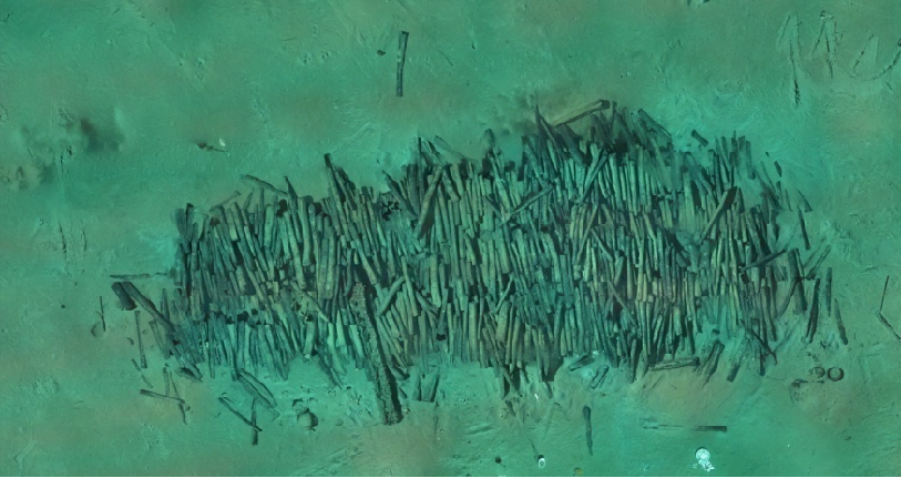 二号沉船遗址核心区南北长约21米、东西最宽约8米,遗物以堆叠有序的原木为主,另有少量陶瓷器、铅锡器等。