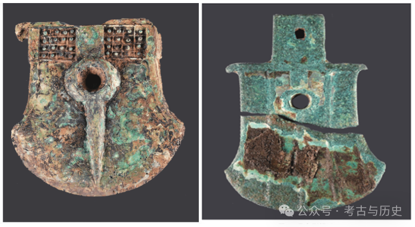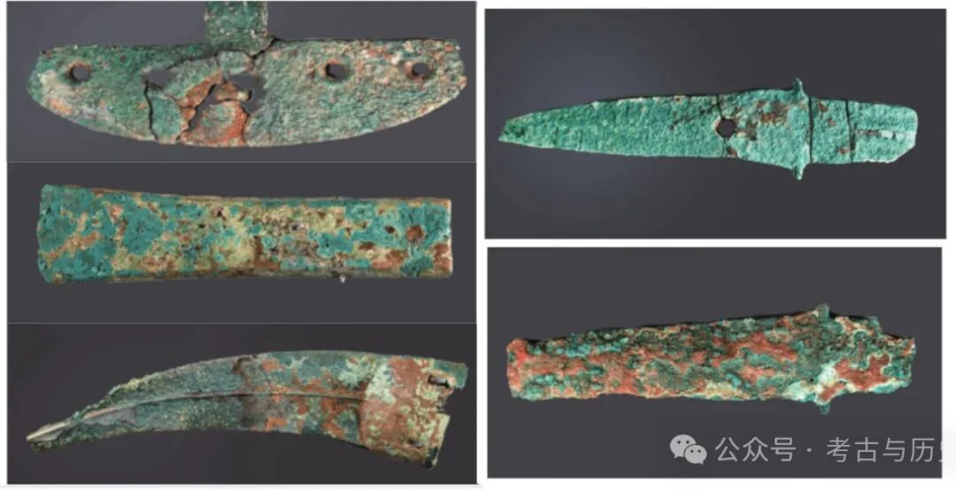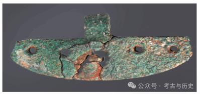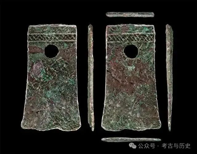 一是可能为北方地区传来。北京大学教授徐天进认为,三官庙遗址出土的一些器型在青海、甘肃、陕西等北方地区较为多见。如下图出土于青海省湟中县潘家梁遗址卡约文化墓葬中的这件铜钺。但是否为外部传来,需要对青铜器的成分进行科学分析。