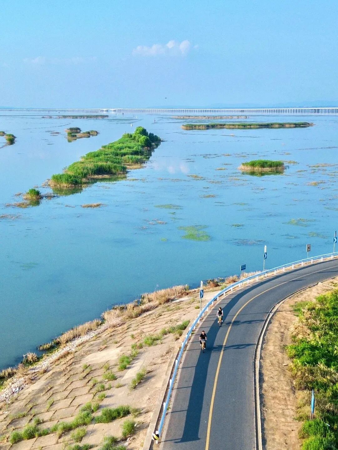 2⃣石臼湖有南京版“天空之城”的称号,坐上s9号线横跨石臼湖,恍惚闯入宫崎骏的动漫世界!再从“团结圩”地铁站租共享单车骑到湖边,看一场绝美日落。