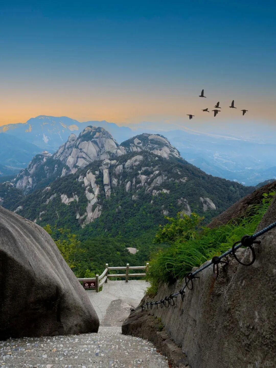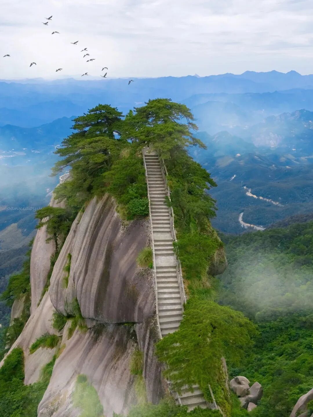 3⃣ 百步云梯确实坡度快接近70°,很是险峻🤔如果你爱户外爬山,这里记得来挑战下💫4⃣ 青龙背看日出观景点位,游龙在天既视感,侧面看好似龙脊⛰