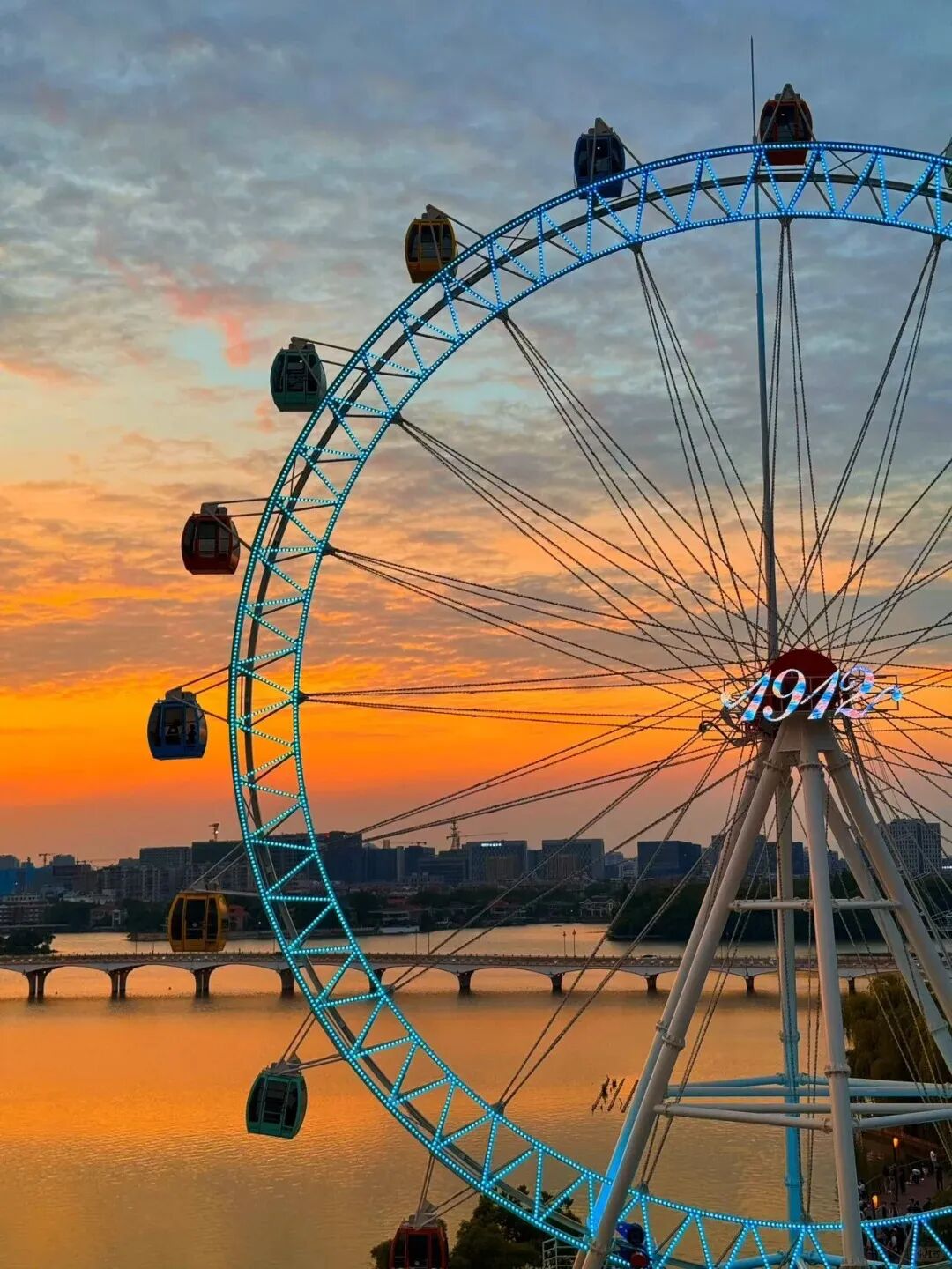 3️⃣鱼嘴湿地公园灯塔➕落日,有多浪漫无需描述…4️⃣下关主题公园可以看到江边轮渡在夕阳余晖下前行~