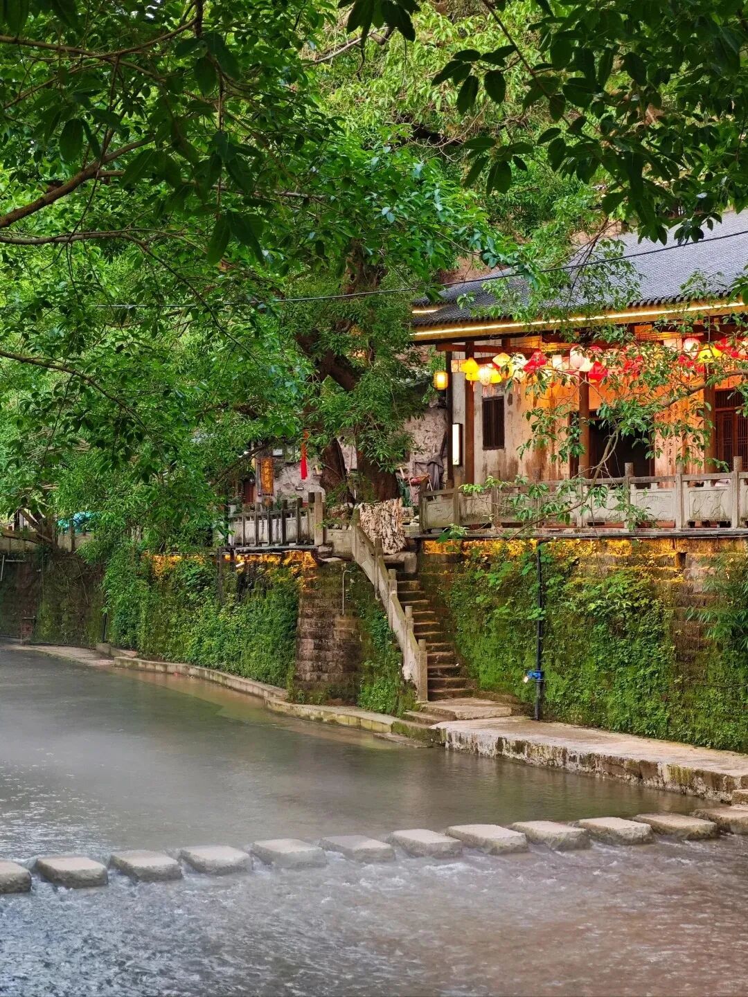 5⃣接龙广场:广场上有两棵百年黄葛树,可在树下休息、拍照留念。6⃣吊脚楼:依山而建的吊脚楼是偏岩古镇的一大特色,展现了重庆山城的独特建筑风格。