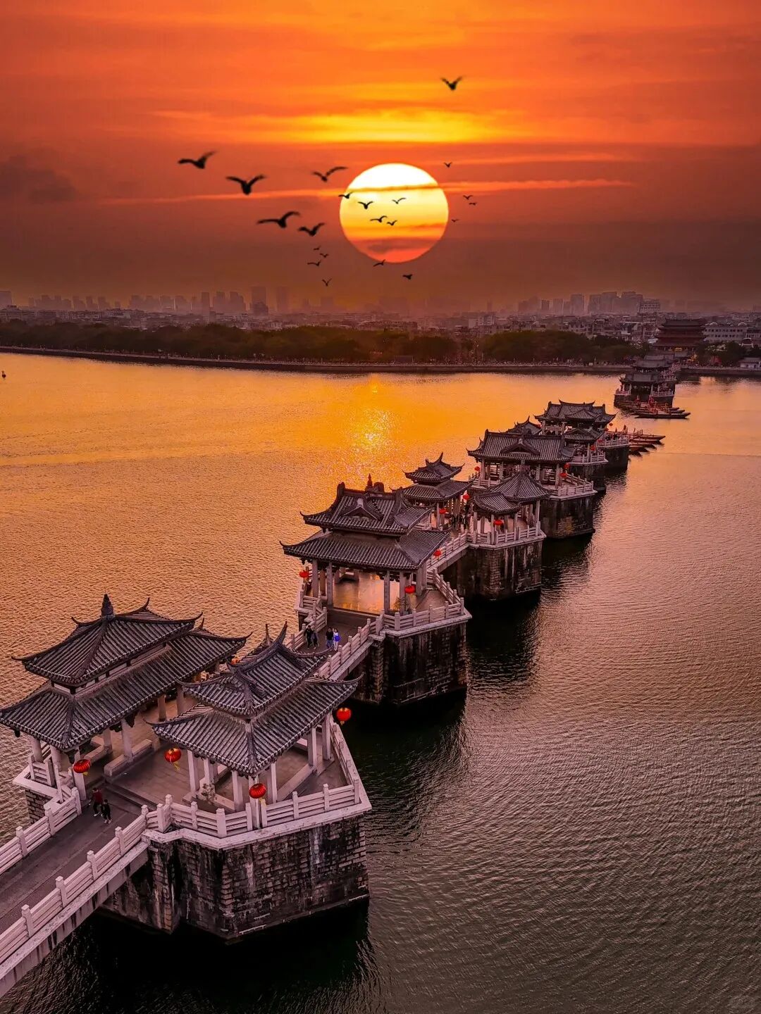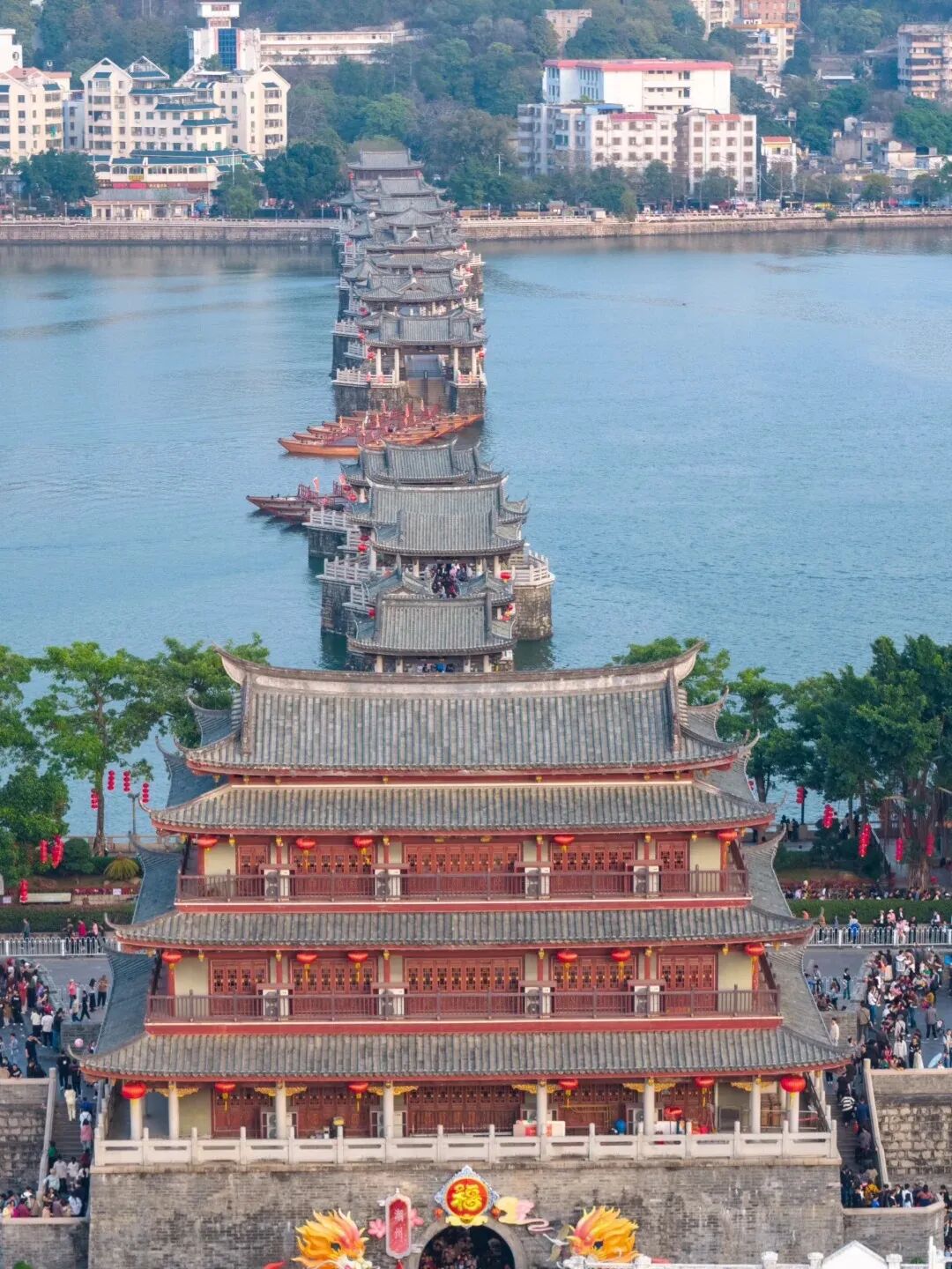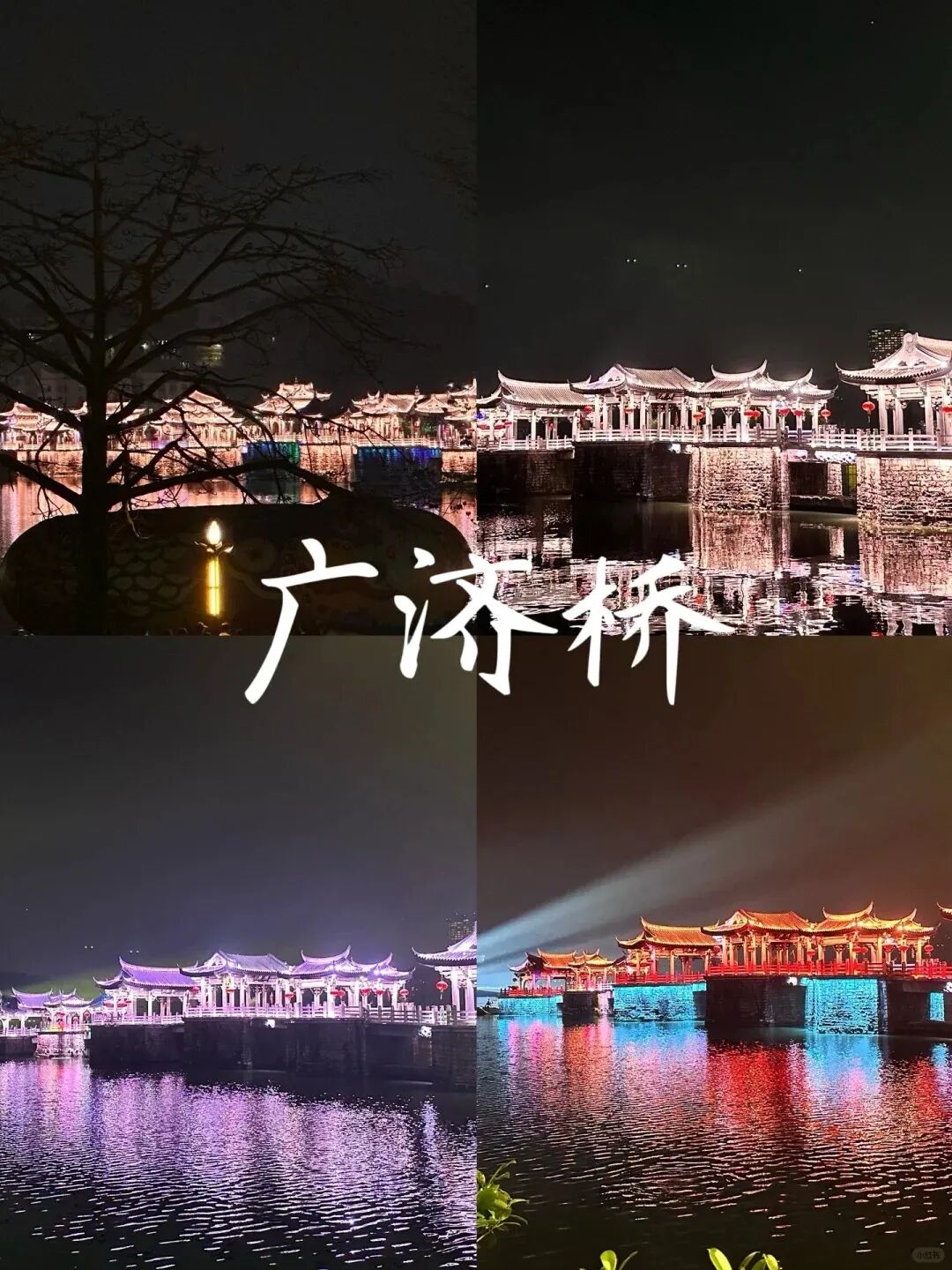 🎫门票:日常💰20元,节假日💰15元-中国四大古桥之一,又名湘子桥,是世界上最早的启闭式桥梁,现实版的“过河拆桥”🕒拆桥时间:每天下午17:30🕒搭桥时间:每天上午10:00-不要只傻傻的白天看,晚上的灯光秀也超级美!-灯光秀🎫门票:免费🕒双休日、法定节假日:晚8:00和21:30各一场🕒非法定节假日的周一到周四:晚8:00一场