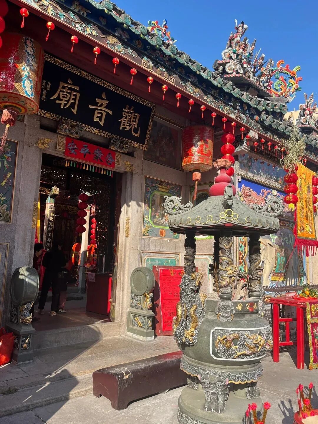 香火很旺,看过嵌瓷后进去拜一拜,还可以求一支新年签,庙里的师傅很耐心地教我该如何拜拜、如何求签,临走师傅塞给我一把花生🥜,他说这是贵人果,多吃有好运。