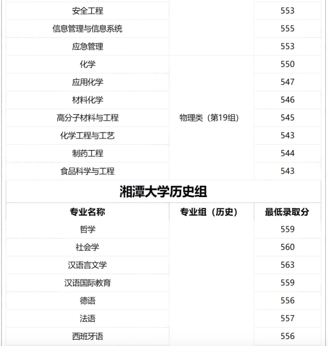 它的其他专业大部分都需要550分以上,为什么这一组只需要529分,而且还是物理学专业,不是特别差的专业,我们仔细查看一下,才发现第12组是定向西藏就业,这种招生类型特别少,报考的人也比较少,所以分数比较低,同时湘潭大学还有地方专项计划,国家专项计划,中外合作办学专业等特殊招生形式,每种招生类型录取方式都不一样,所能报考的要求也不一样,所以最终的录取分数线也就不一样。