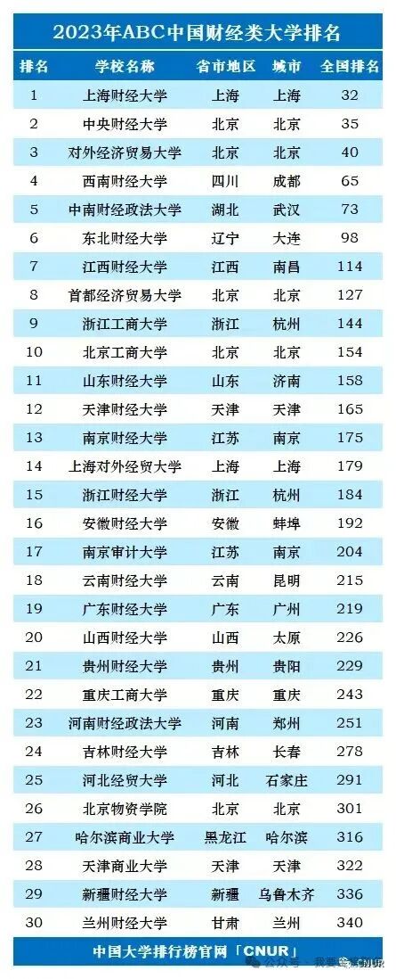 至于其他的财经的院校,很多都是商业学校,轻工业学校或者粮食学校改建而来的。财经办学历史并不是特别长。很多都是最近20年才更名的,所以排名相对来说比较靠后,大家如果感兴趣的话,可以多去看看这些大学的历史。