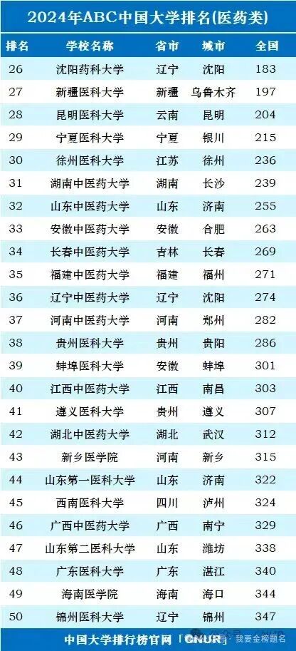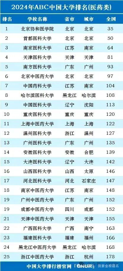我国医学类院校众多,其中不少已并入综合性大学,本次排名主要关注独立的医科类大学,综合性大学内的医学院不在排名之列,在众多院校中,协和医学院以其百年的办学历史和强大的办学实力,稳居榜首。首都医科大学紧随其后,南京医科大学、天津医科大学、南方医科大学等也都在排名中占据重要地位。
