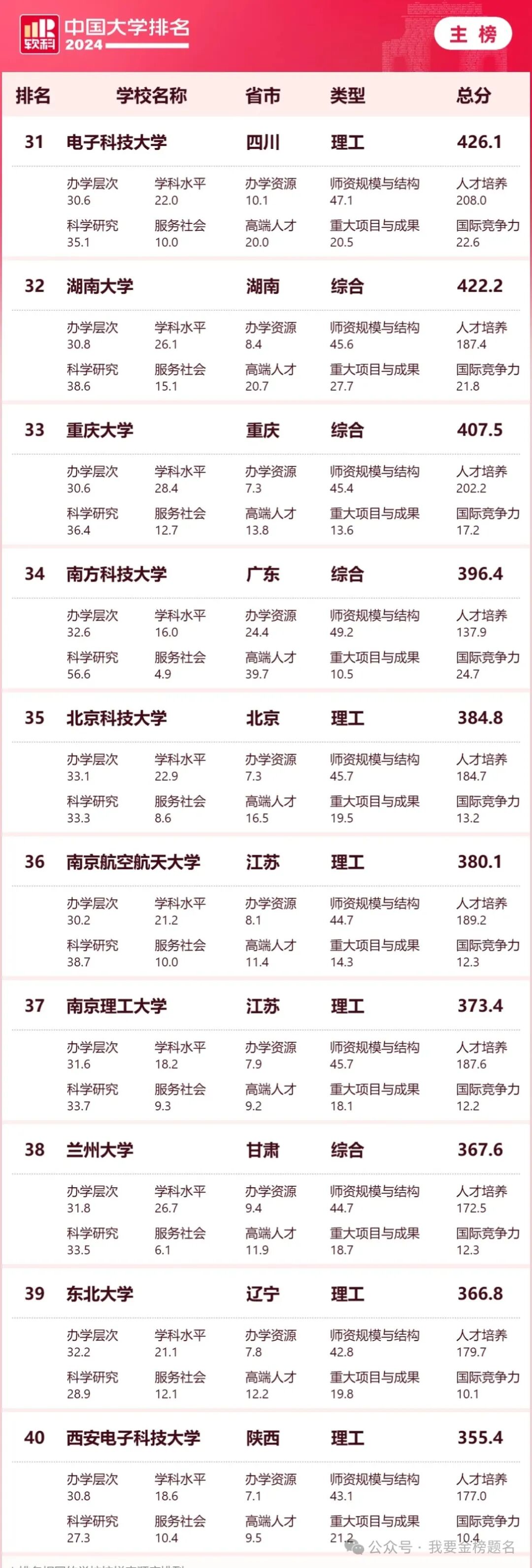 另外不得不说的是上升幅度最大的高校应该是南方科技大学,全国排名34位。这几乎已经超过了好几所985高校的名次。你要知道南方科技大学创办时间只有十多年时间。去年刚刚升为双一流院校,现在全国排名超过部分985高校,可以说是火箭般的速度。当然我们也可以看到南方科技大学确实受到了很多学生的认可。不管是综合评价录取还是统招录取的学生,分数都很高。基本上达到了985高校的水平。我觉得主要还是因为学校处于改革开放的前沿深圳市,另外学校经费充足,新体制办学模式灵活,学生收获很大。