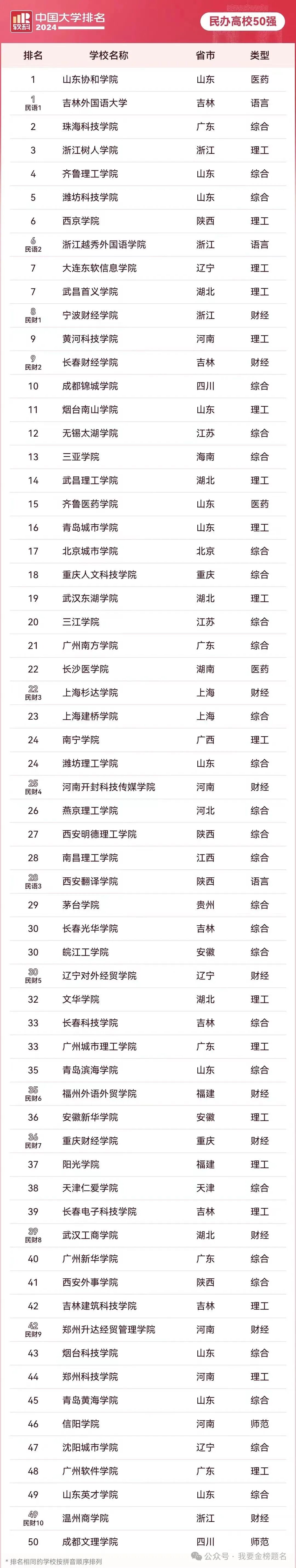 最近,软科发布了2024年民办高校50强排名,让我们一起来看看我国办得比较好的民办大学都有哪些?