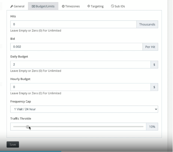 Frequency Cap,同一流量点击间隔选1Visit/24 hour