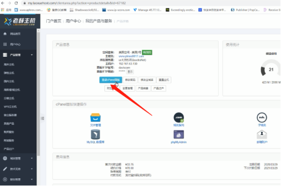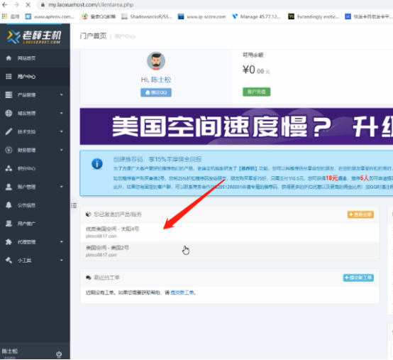 首先我们登录老薛主机,正常情况下我们登录之后就显示主机以及购买的域名。