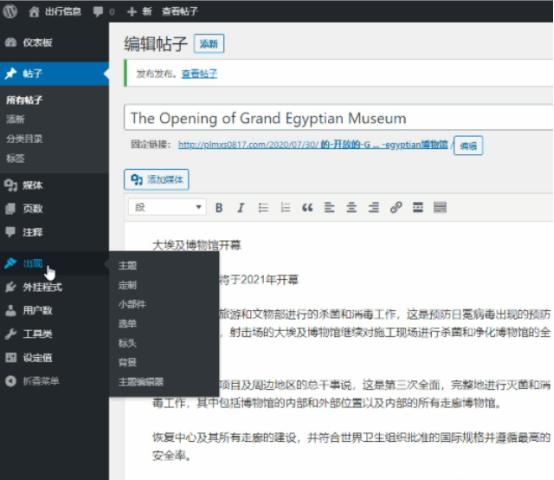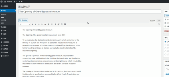 发布成功,我们就可以看到网站上已经有了我们刚才发布的文章