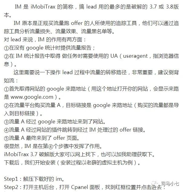 是不是很长?其实很多东西,就是因为步骤多而被人嫌弃就坚持不下去,吃互联网这碗饭就是要细致,一个细节有可能就设置错误了,所以希望大家反复收看,暂时不理解的先收藏起来,总会用的上的,可以这么说做LEAD,如果不会设置IM和使用他,基本联盟是下不了款的,这个可以说是重中之重的细节。不可获取的步骤哈。好了今天司马小七就分享到这,下期我们讲解下虚拟机的内容,有想了解更多的内容和知识的,可以加入我的VIP社群或者司马小七的知识星球: