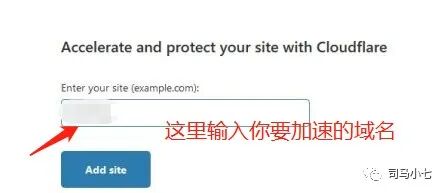 (1)向cloudflare添加你要加速的网站:首次注册成功后,会跳转到让你添加网站的界面,如下图所示: