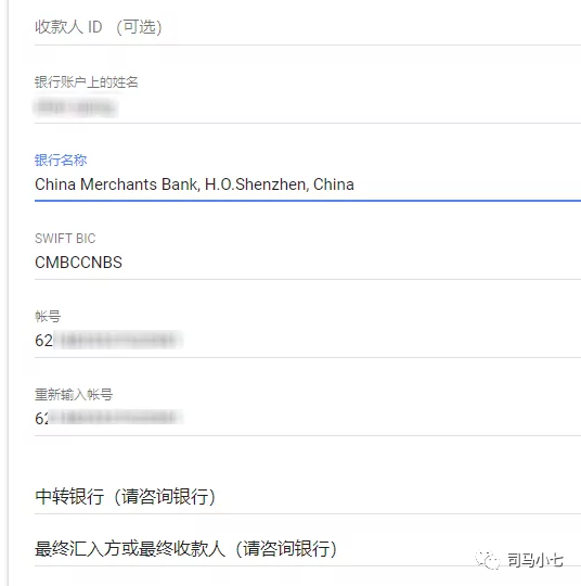 大家好!我是司马小七,司马网创基地创始人。从事国内外互联网项目研究20年,早年专注于国外LEAD、广告联盟的研究工作,现在注重分享互联网项目拆解和资源共享。Google Adsense已经不支持西联汇款了,经过测试发现不同的银行对于Adsence美元电汇接收会有不同的要求,有些银行还要求提供Adsense合同,条例限制还是蛮多的。今天司马小七来给大家做一期关于电汇提现的教程!