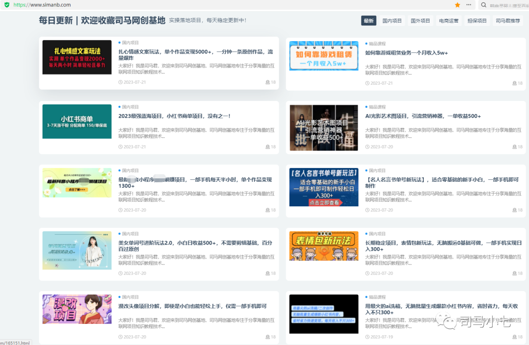 简介:司马君聊网事是司马网创基地旗下专门讲解副业测评的栏目,会收集当前市场热门的副业项目进行思路分析和拆解,给大家闭坑和学习,是一个免费的知识平台。