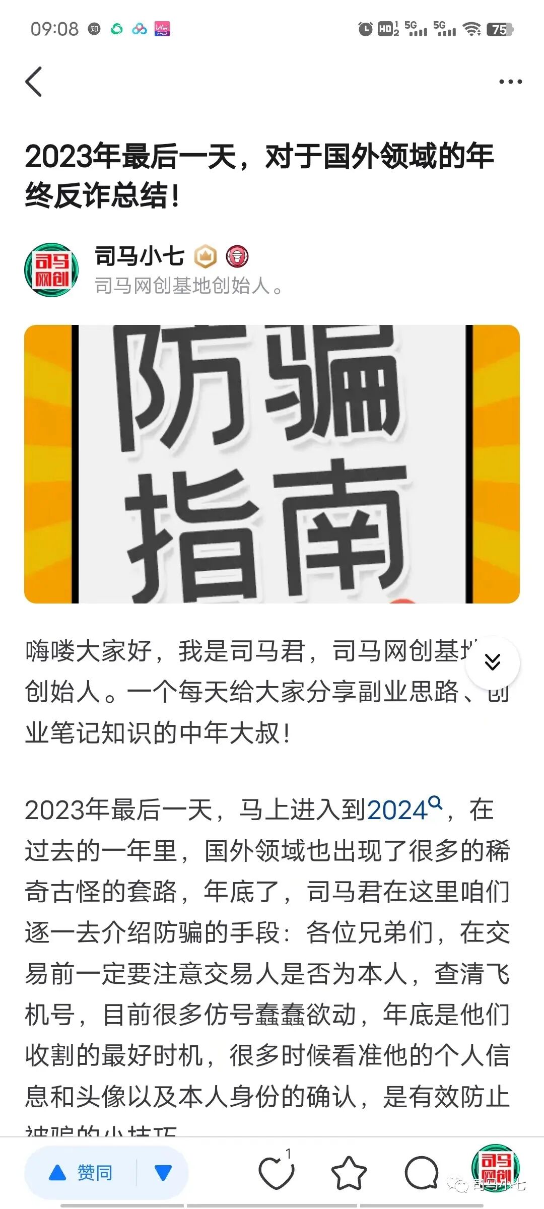 比如知乎上(知乎搜索:司马小七)有写关于年底反诈的总结,大家需要捂紧自己的钱包,安心过年哈!所以你如果想看一些技术或者关心一些行业动态,可以考虑看下我的知乎频道,免费的!