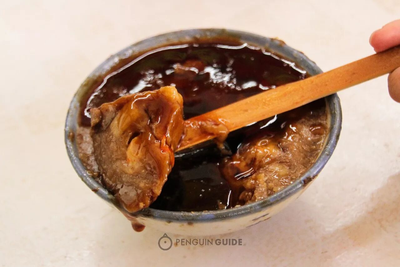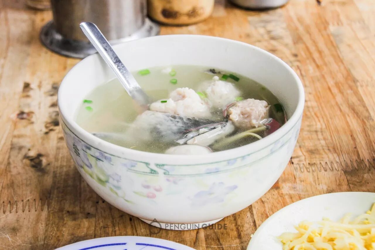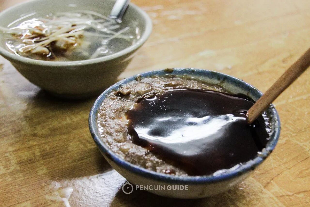 鱼羹是碗粿的忠实好伙伴,用虱目鱼及旗鱼肉搅碎混合,手工捏制,勾芡汤汁甜如糖水,若觉腻口,加点姜丝黑醋便酸爽许多。