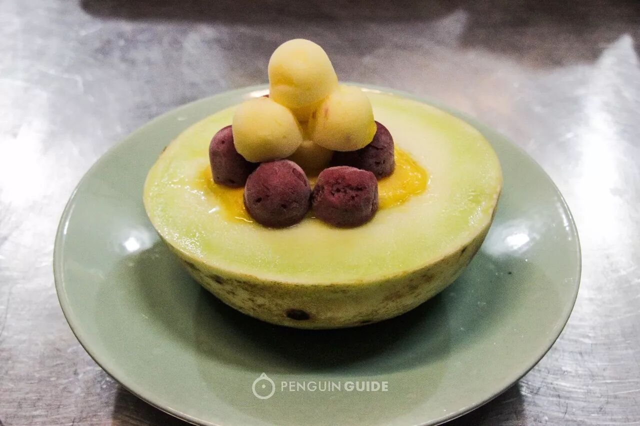 老字号泰成传承三代,开了有八十几年,人气始终不坠。“哈密瓜瓜冰”绝对是泰成必带。以哈密瓜瓜盅作底,去籽后,铺几球店家自制的意式冰淇淋,不只颜值高,口味更好。