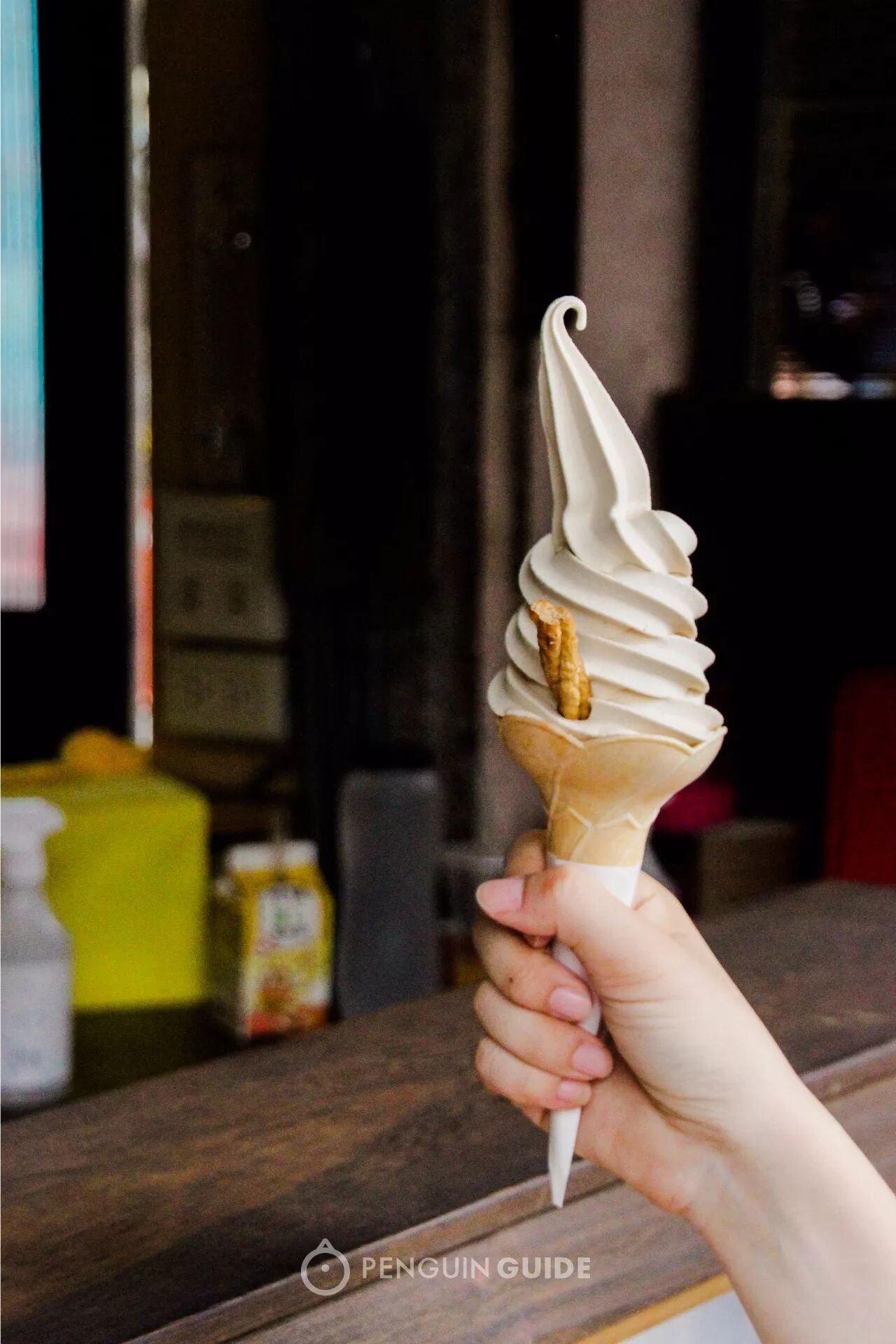 闲逛之余,还可以顺手买个冰淇淋吃。“蜷尾家甘味处散步甜食”的霜淇淋,真材实料不加一滴水,乳香内敛化在舌尖。生意总是红火。