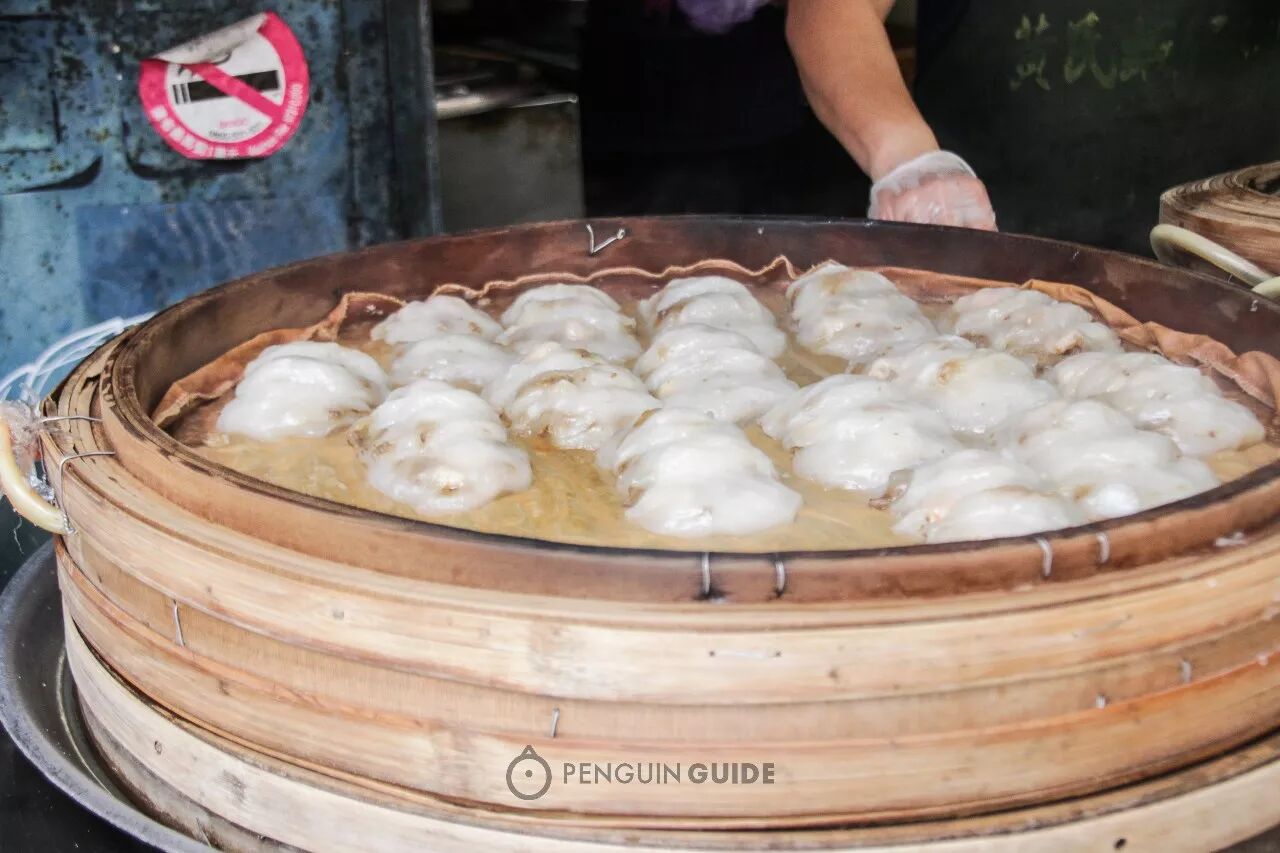 幸而我们来得巧,老式木制蒸笼里正炊着肉圆,老板咻咻挑起三颗,浇上自制酱汁。由米浆蕃薯粉调和而成的肉圆皮,泛着半透明光泽,火烧虾在其间若隐若现。
