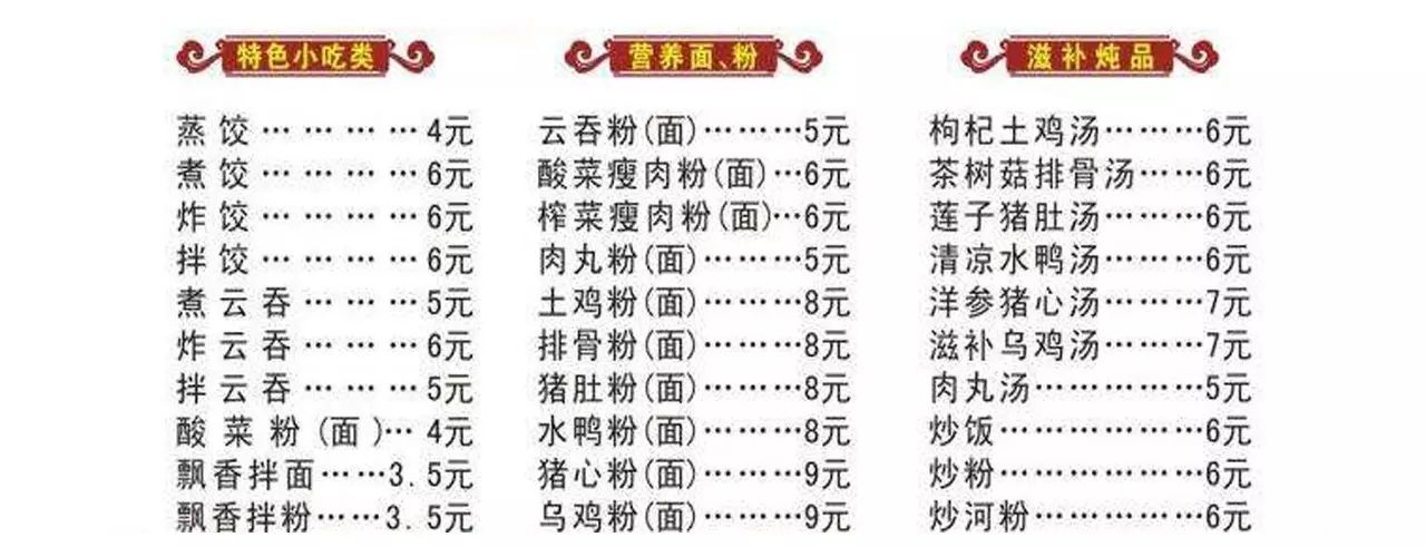 比较一下菜单,就能感受到沙县以外和沙县当地的小吃差异: