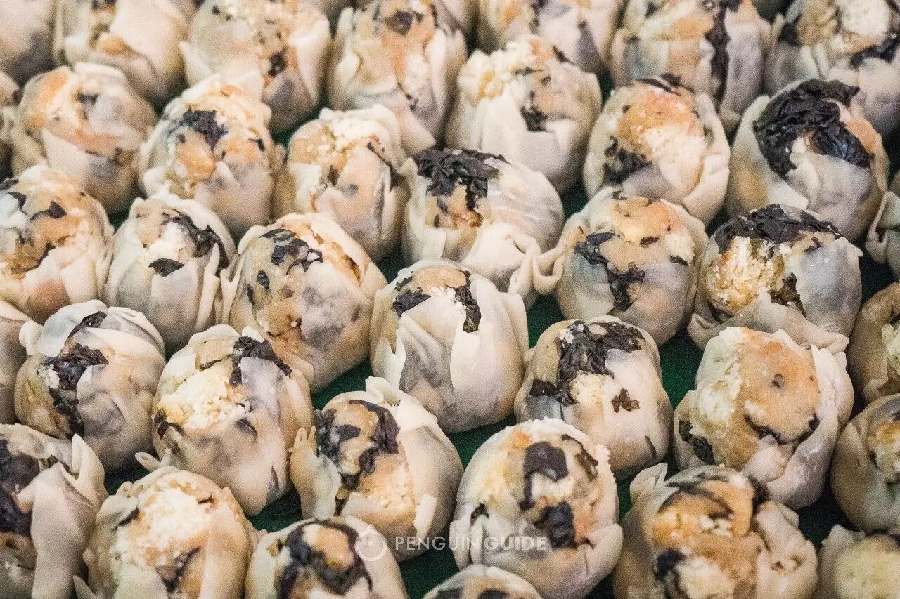 甜烧卖的外形不太好看,却有内秀。第一口吃下去,可能会觉得面皮、紫菜和饼丁混合在一起的厚重感有点奇怪,但多吃几口,就会迷上这种饱满又甜糯的味道。