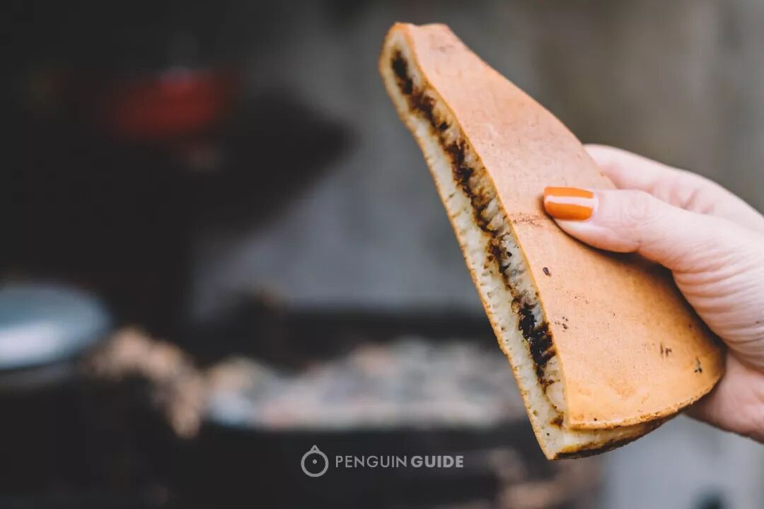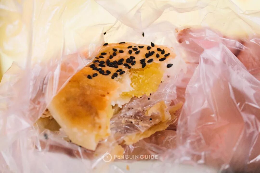 ▲吃起来像铜锣烧和黄金糕的合体,刚出锅时香甜松软,稍凉一些韧性更好。