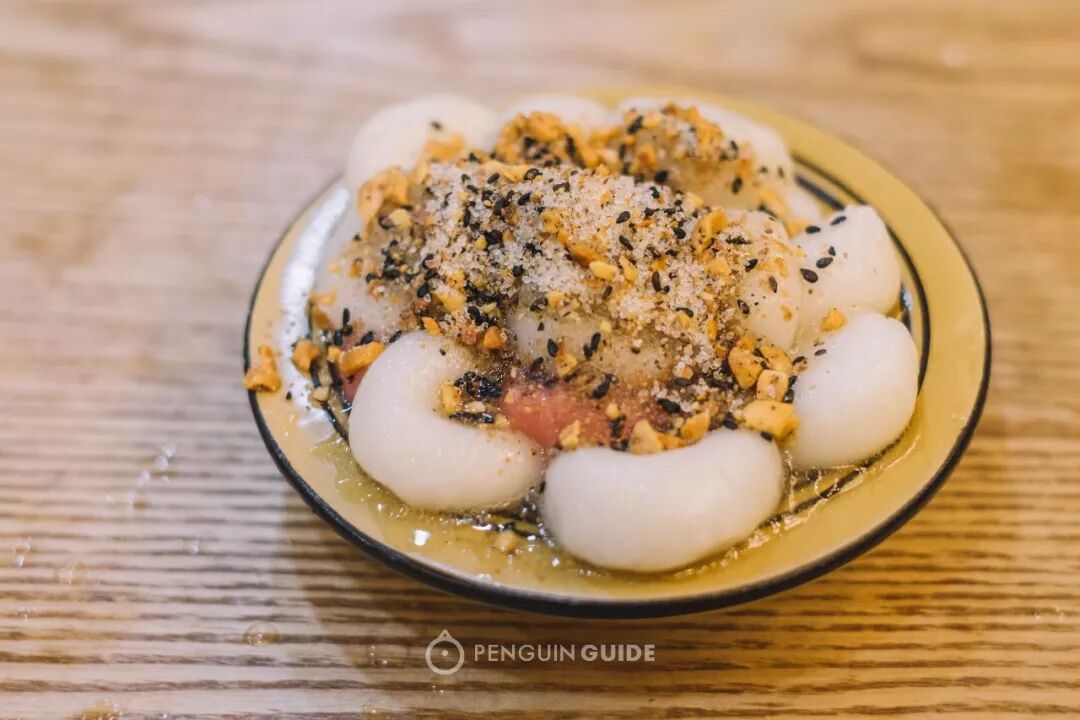 七夕糖粿则豪迈地洒满白糖芝麻花生碎。还吃得下的同学可以来份芋泥!