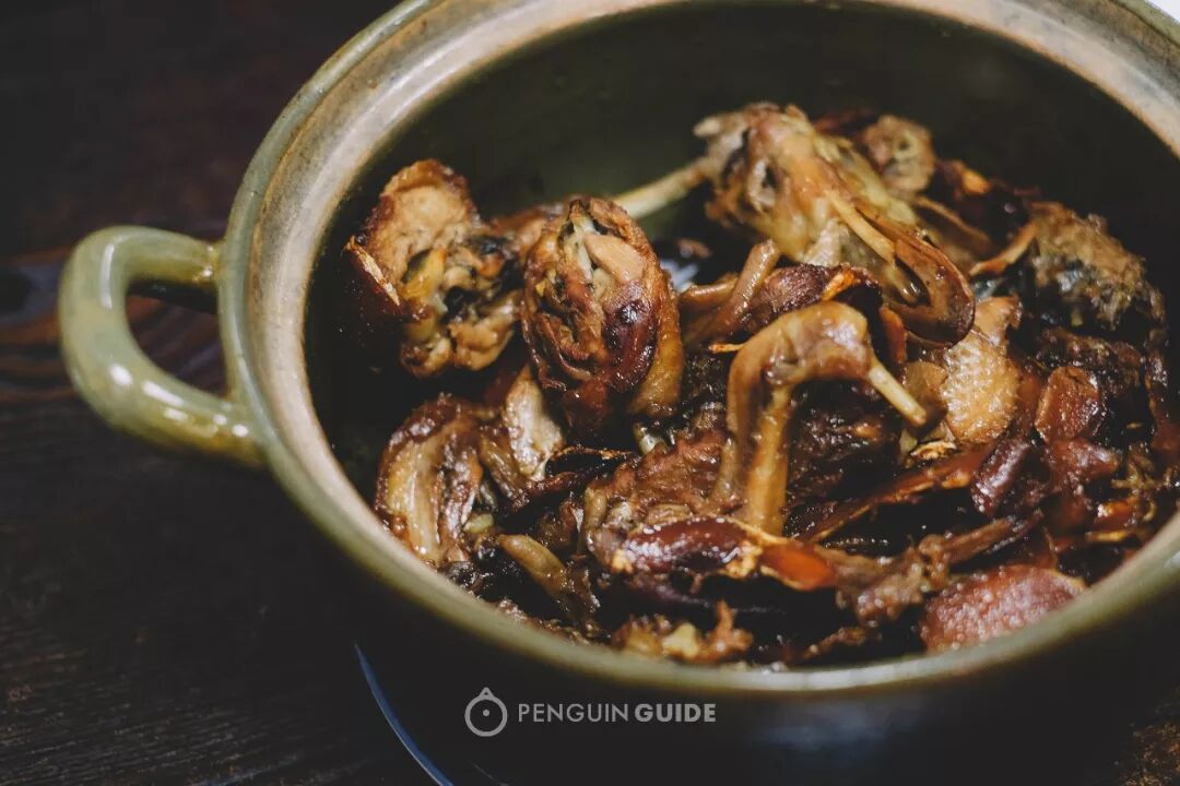 鸭子的油脂全被逼出来了(底下是油汪汪的),看起来有点柴,但实际皮酥肉嫩,非常入味。姜母焗过之后褪去辛辣,吃起来竟有点像笋干,拌饭可以吃好几块。