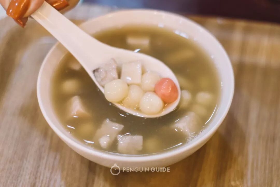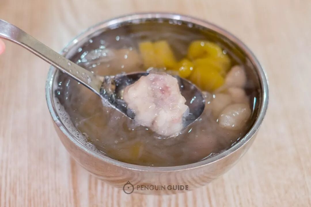 糖水甜度刚刚好。石花较细,软却不失韧性。配料大多是店家自己做的,选了芋头、番薯圆和QQ果。终于在番薯圆里吃到真正的地瓜味,太感动了。一碗6块钱,业界良心。
